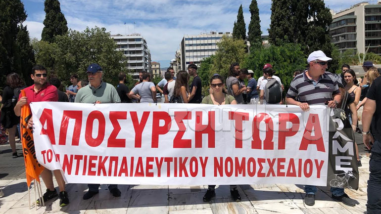 Διαμαρτυρία στο Σύνταγμα πραγματοποιούν εκπαιδευτικοί και φοιτητικοί σύλλογοι καθώς εναντιώνονται στο πολυνομοσχέδιο του Υπουργείου Παιδείας. Το κέντρο της Αθήνας είναι κλειστό για τους οδηγούς των οχημάτων.