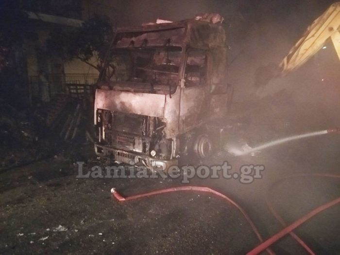 Μία νταλίκα, για άγνωστες μέχρι στιγμής αιτίες, είχε τυλιχτεί στις φλόγες μέσα στα Καμένα Βούρλα, πάνω από το παλιό «Χάνι του Καλογήρου», ενώ κανείς δεν μπορούσε να πλησιάσει στο σημείο, καθώς συνεχίζονταν οι εκρήξεις.