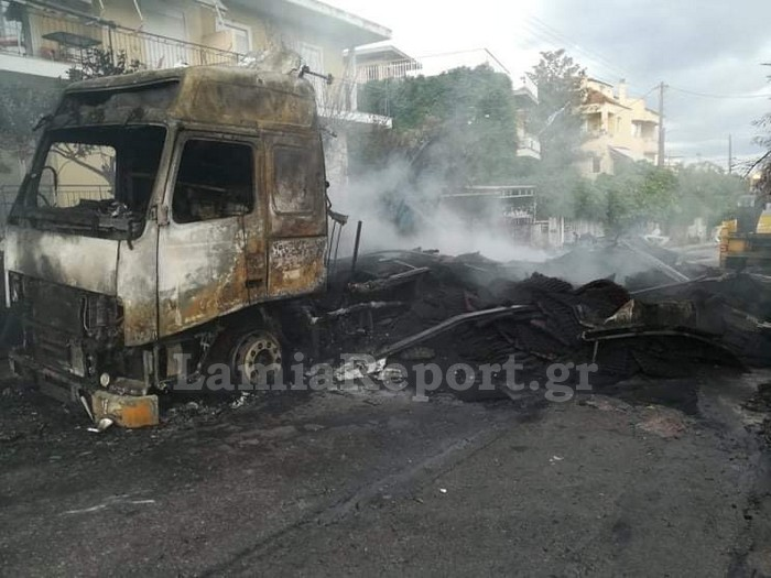Σύμφωνα με μαρτυρίες, το τεράστιο όχημα μετέφερε δάπεδα για παιδικές χαρές και καταστράφηκε ολοσχερώς, ενώ ζημιές προκλήθηκαν και σε παρακείμενο όχημα.