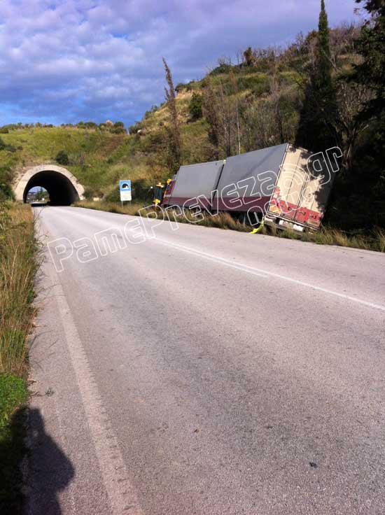 Εκτός δρόμου βγήκε το πρωί της Τετάρτης μια νταλίκα στην Εθνική Οδό Πρέβεζας – Ηγουμενίτσας.