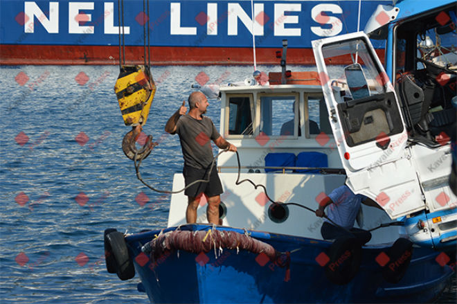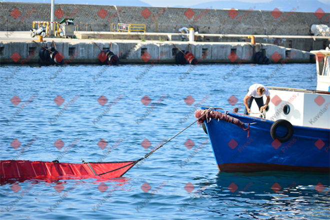 Αμέσως κινητοποιήθηκαν άνδρες του λιμενικού για να περιφράξουν τόσο το φορτηγό όσο και την μικρή κηλίδα πετρελαίου που σχηματίστηκε στα νερά του λιμανιού λόγω διαρροής στο γεμάτο με περίπου 200 λίτρα πετρελαίου ντεπόζιτο του φορτηγού.