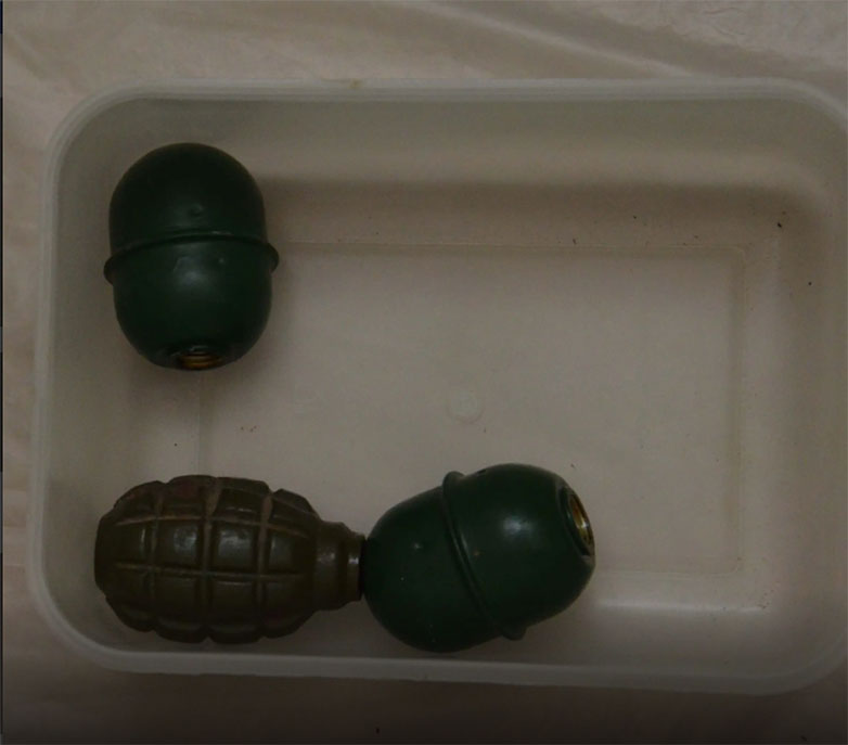 Ειδικότερα, κατά την έρευνα, την οποία συνέδραμαν εξειδικευμένα στελέχη του Τμήματος Εξουδετέρωσης Εκρηκτικών Μηχανισμών (ΤΕΕΜ) και της Διεύθυνσης Εγκληματολογικών Ερευνών, βρέθηκαν και κατασχέθηκαν:
