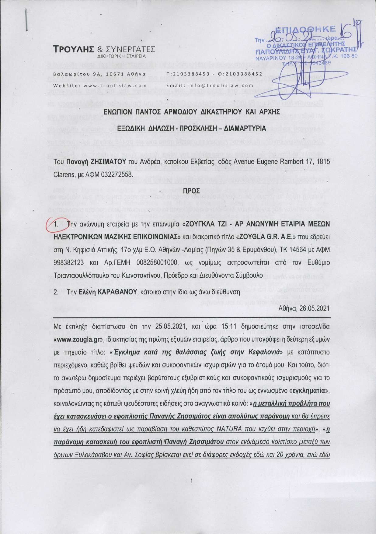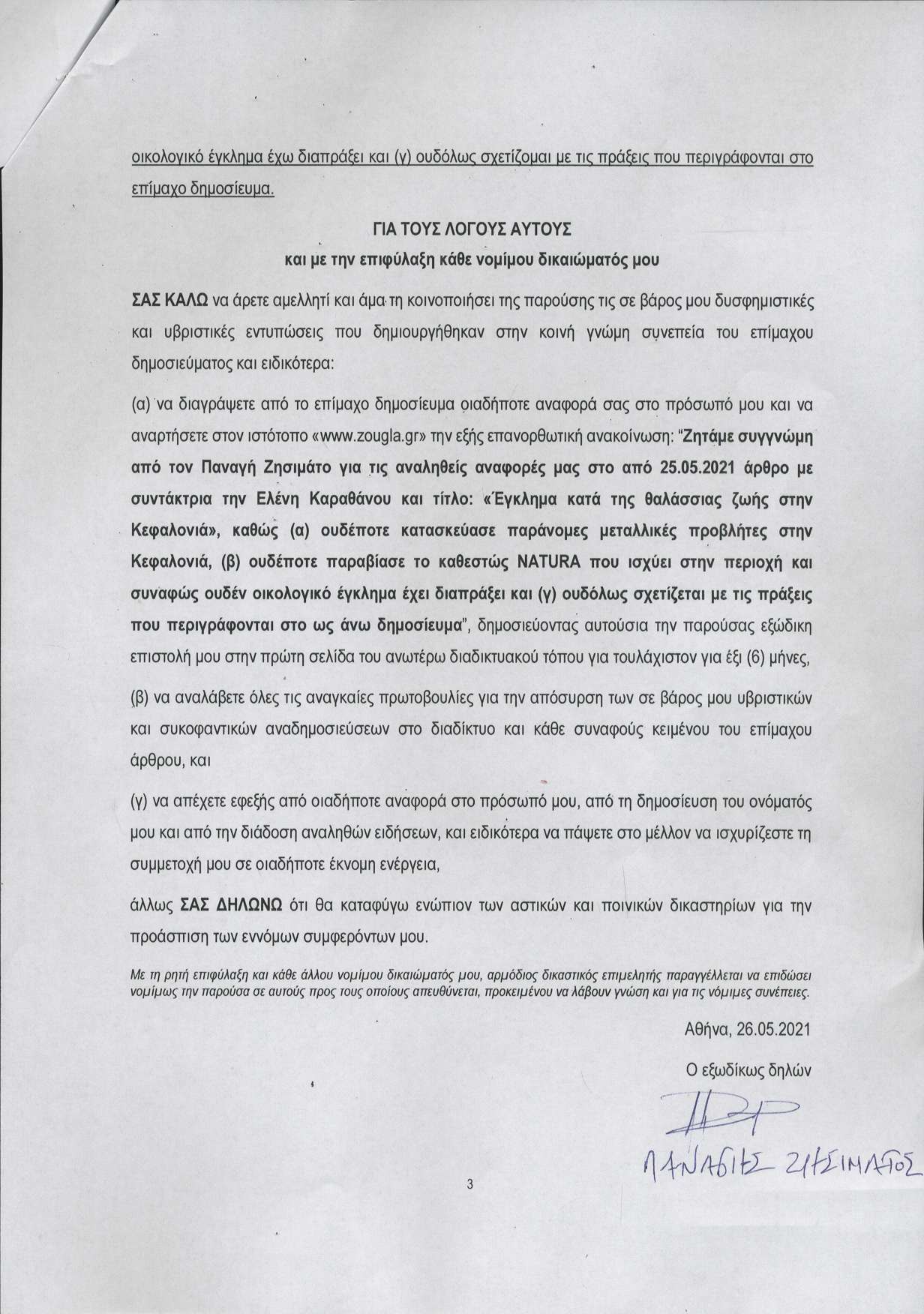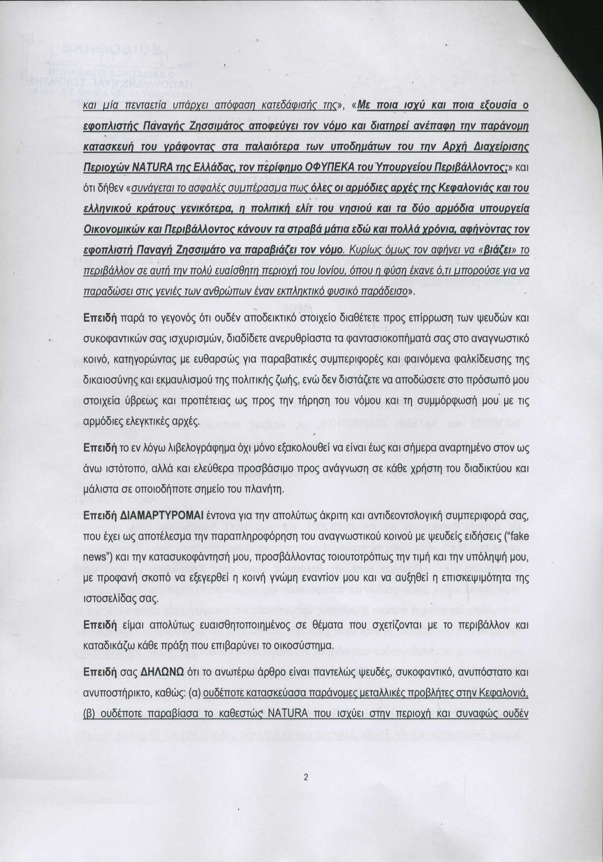 Η πλευρά του εφοπλιστή απάντησε στο ρεπορτάζ του zougla.gr στέλνοντας εξώδικο. Μάλιστα στο συγκεκριμένο έγγραφο αναφέρεται πως «ο εφοπλιστής δεν έχει κατασκευάσει καμία παράνομη μεταλλική προβλήτα και ουδέποτε παραβίασε το καθεστώς NΑΤURA». Δείτε το εξώδικο: