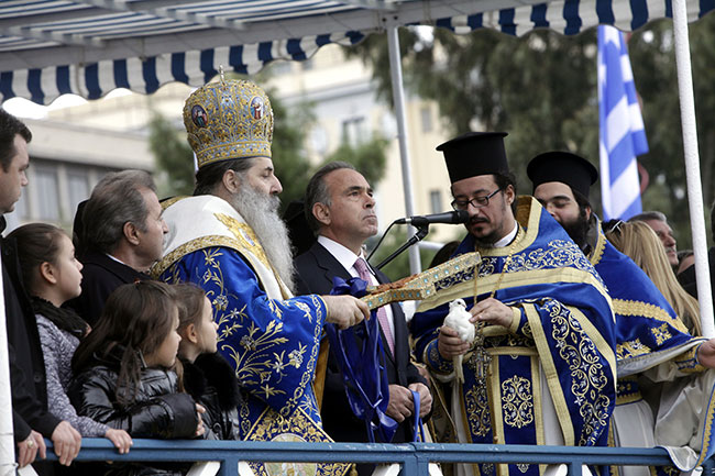 Στη Δεξαμενή στο Κολωνάκι πραγματοποιήθηκε σήμερα ο καθιερωμένος Αγιασμός των Υδάτων, παρουσία του δημάρχου Αθηναίων Γιώργου Καμίνη και της υπουργού Τουρισμού Όλγας Κεφαλογιάννη.