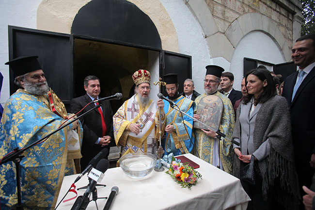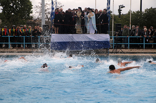 Ο αγιασμός τελέσθηκε στις 11:30 και στο Κολυμβητήριο του Εθνικού Γυμναστικού Συλλόγου, επί της οδού Βασιλίσσης Όλγας 6.