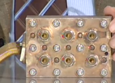 Σιγά-σιγά άρχισε να αποκαλύπτεται η «καρδιά» της συσκευής. Οι δύο μεταλλικές «καρδιές», βάρους 5 κιλών η καθεμία, που μετατρέπουν το νεράκι σε ηλεκτρικό ρεύμα, καταλήγοντας σε μία πλακέτα.