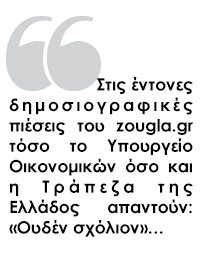 Στις έντονες δημοσιογραφικές πιέσεις του zougla.gr τόσο το Υπουργείο Οικονομικών όσο και η Τράπεζα της Ελλάδος απαντούν: «Ουδέν σχόλιον»…