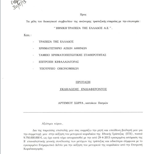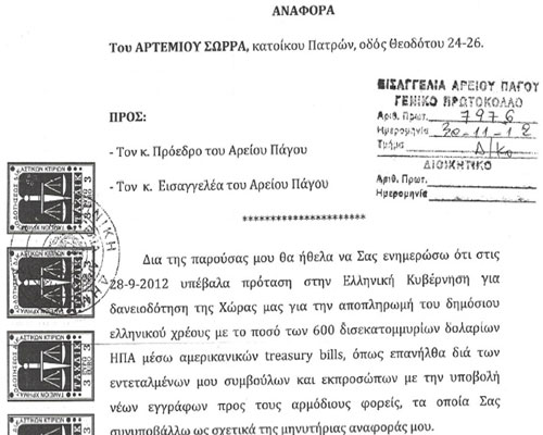 Με αυτόν τον τρόπο οι ισχυρισμοί του Αρτέμη Σώρρα αποκτούν και θεσμική νομιμοποίηση και ο ίδιος περνά στην αντεπίθεση: μηνύει όλους τους κυβερνώντες και τους βουλευτές στον Άρειο Πάγο με την κατηγορία της «εσχάτης προδοσίας».