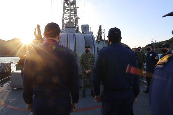 Στο πλαίσιο των επαφών του με το προσωπικό, ο Αρχηγός ΓΕΕΘΑ εξήρε την προσπάθεια που κατέβαλλαν στην επιτυχή αντιμετώπιση της πολύμηνης τουρκικής προκλητικότητας στην Ανατολική Μεσόγειο και το Αιγαίο. Έδωσε εντολές για συνεχή επαγρύπνηση και αναφέρθηκε στις ενέργειες που έχουν αναληφθεί από το ΓΕΕΘΑ, για την αύξηση και ανανέωση του προσωπικού μέσω των προσλήψεων, της προσπάθειας αναβάθμισης των μέσων και των υλικών και βεβαίως της συντήρησης και εκσυγχρονισμού των υφισταμένων.