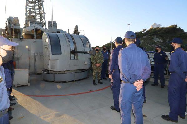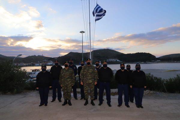 Τέλος επισκέφθηκε τα Επιτηρητικά Φυλάκια στα Ψαρά, στην Παναγιά και στο Αγαθονήσι, όπου στο Φυλάκιο τον υποδέχθηκε ο δήμαρχος κ. Ευάγγελος Κόττορος. Τελευταίος σταθμός της περιοδείας ήταν το Φαρμακονήσι, όπου αντάλλαξαν ευχές και με το προσωπικό του ΛΣ-ΕΛΚΑΤ που εδρεύει εκεί.