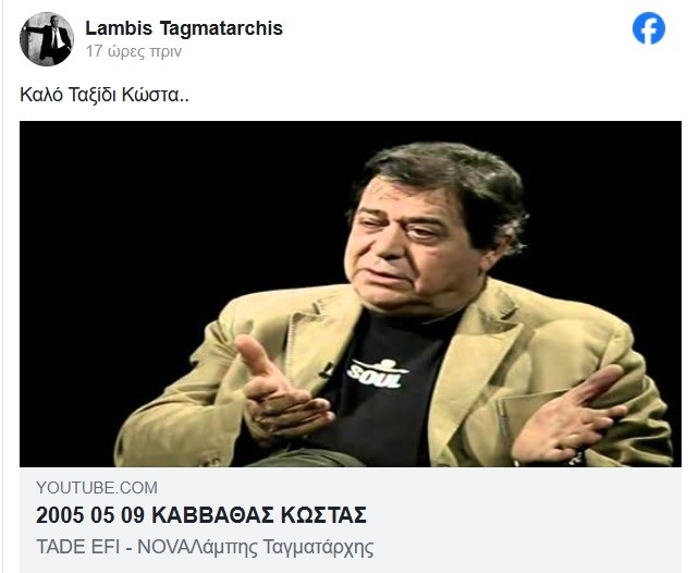Γράφοντας «καλό ταξίδι Κώστα» ανέβασε βίντεο από μία αποκαλυπτική και εκ βαθέων συνέντευξη, που είχε κάνει το 2005 με τον εκλιπόντα.
