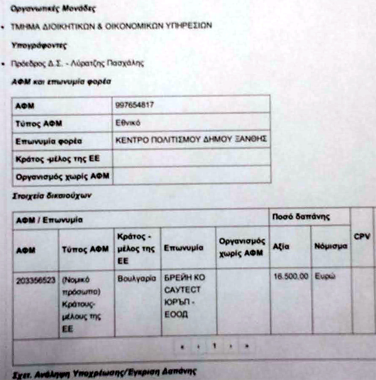 Μια κοροϊδία μπροστά στα μούτρα κάθε αρμόδιου που αναρτήθηκε με ΑΔΑ 64Ι90Κ7Ε-7ΙΔ στη ΔΙΑΥΓΕΙΑ! Ένας φορέας του Δημοσίου πληρώνει έναν Έλληνα καλλιτέχνη 16.500 ευρώ για τη συναυλία του στη Ξάνθη, σε νομικό πρόσωπο στη Βουλγαρία! Και οι μεν δημοτικοί άρχοντες κυκλοφορούν γιορτινοί και χαρούμενοι στη Ξάνθη και ανάβουν δεντράκια με ύφος και αλαζονεία οι δε «και καλά» προοδευτικοί και αντισυστημικοί καλλιτέχνες περιφέρουν χαλαρά το δήθεν προσωπείο τους. Και όλα αυτά εκ προ μελέτης σε βάρος της χειμαζόμενης πατρίδας τους.