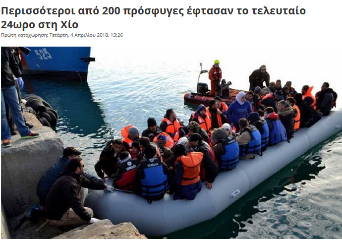 Στις 03.30 τη νύχτα της 3ης προς 4η Απριλίου ξεκίνησαν οι αφίξεις μεταναστών στη Χίο. Συνολικά στο νησί αφίχθησαν 177 άτομα, με τέσσερις διαφορετικές βάρκες που μετέφεραν 55, 26, 43 και 53 άτομα. Επιπλέον 42 μετανάστες και πρόσφυγες έφθασαν με δύο βάρκες στην Κω και ακόμη 25 άτομα αφίχθησαν στη Λέσβο.