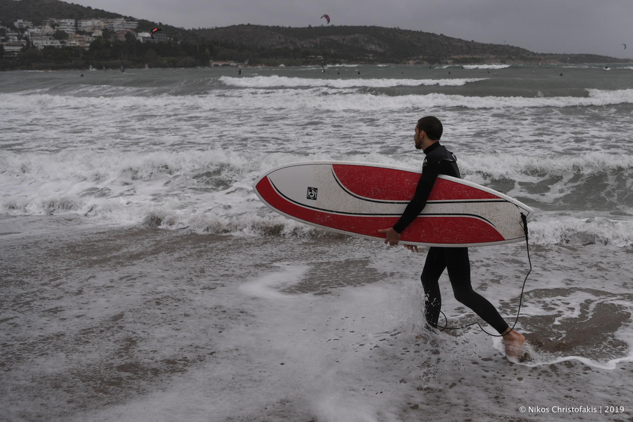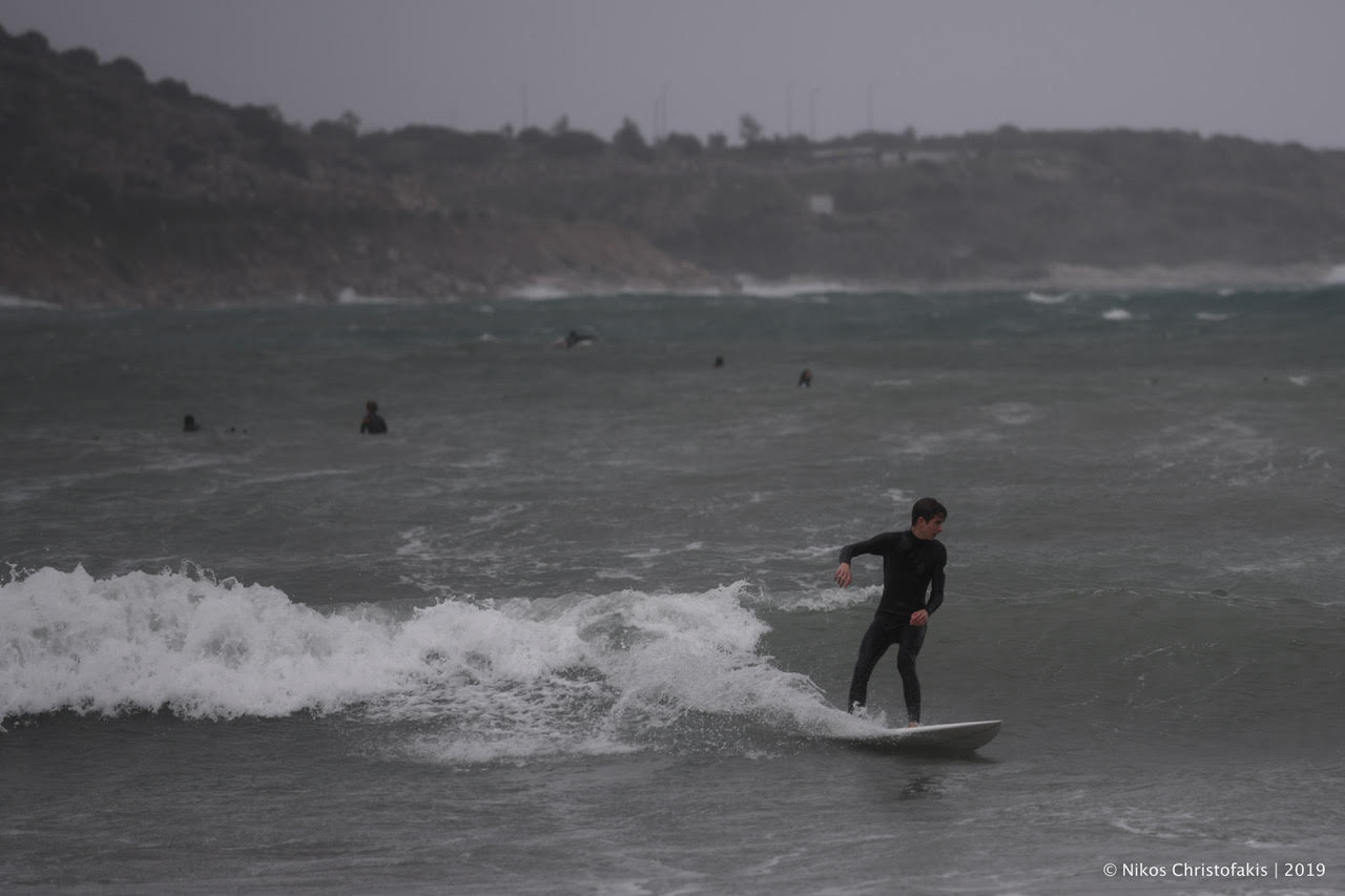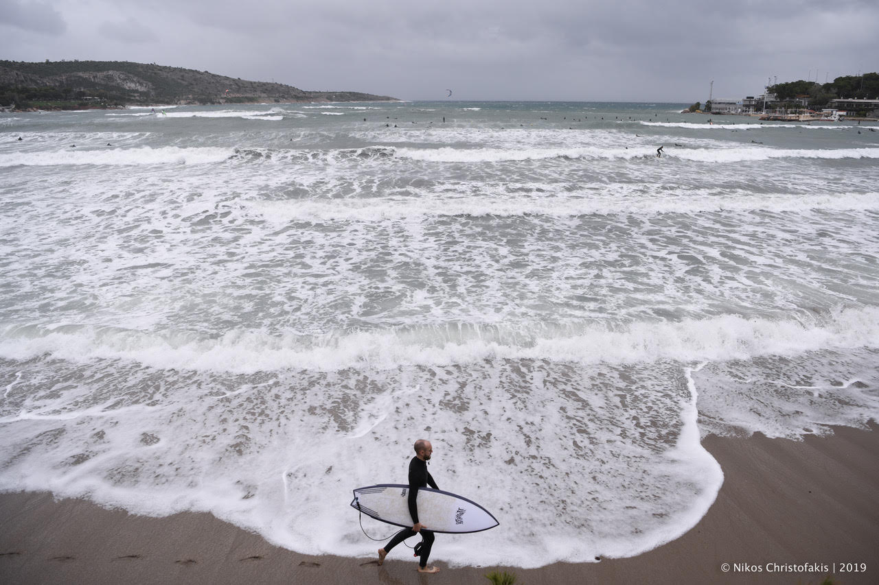 Τους ισχυρούς ανέμους που έφερε η κακοκαιρία «Ετεοκλής» εκμεταλλεύθηκαν surfers που βγήκαν στην παραλία της Βουλιαγμένης για να κάνουν το αγαπημένο τους σπορ παρά τις έντονες βροχοπτώσεις.