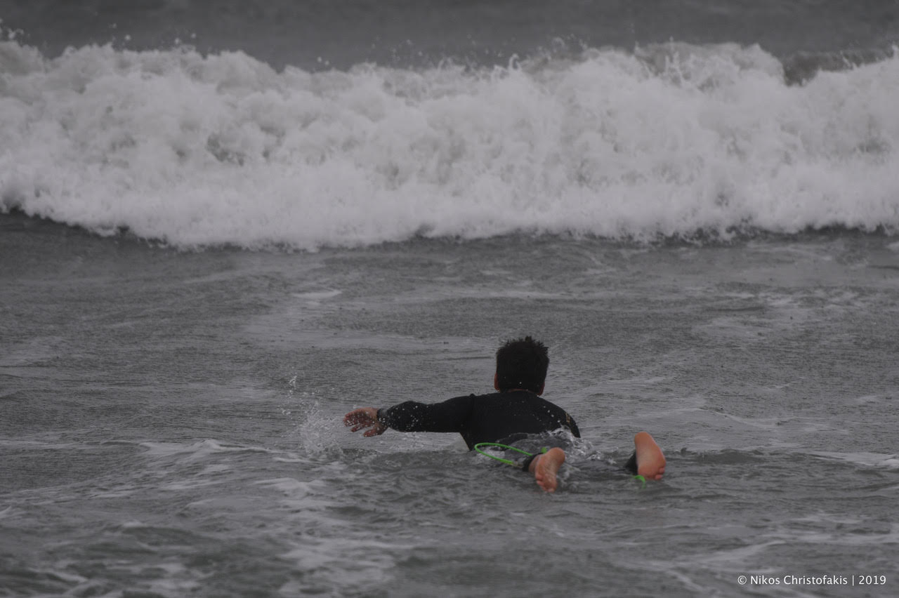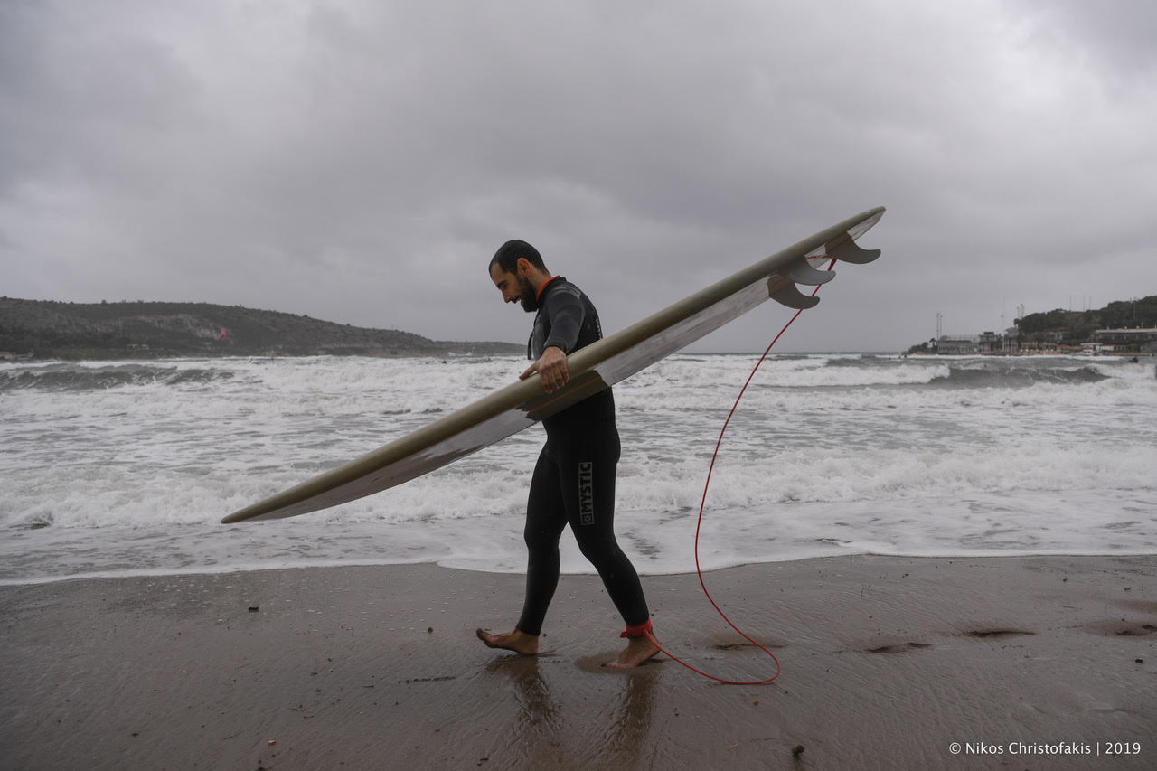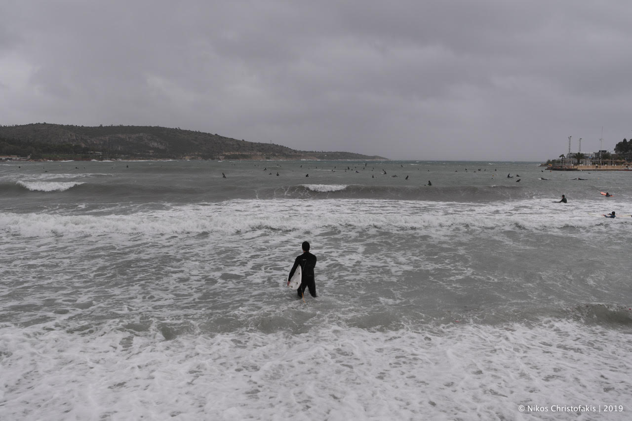 Τους ισχυρούς ανέμους που έφερε η κακοκαιρία «Ετεοκλής» εκμεταλλεύθηκαν surfers που βγήκαν στην παραλία της Βουλιαγμένης για να κάνουν το αγαπημένο τους σπορ παρά τις έντονες βροχοπτώσεις.