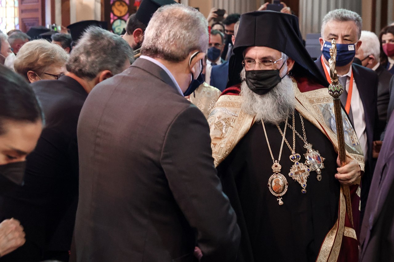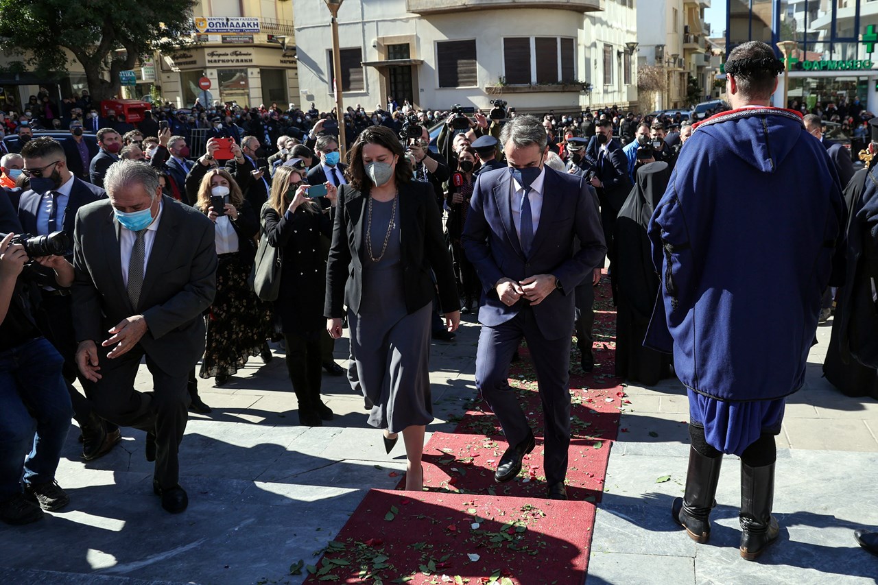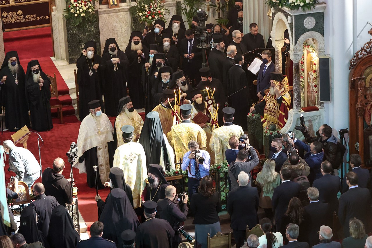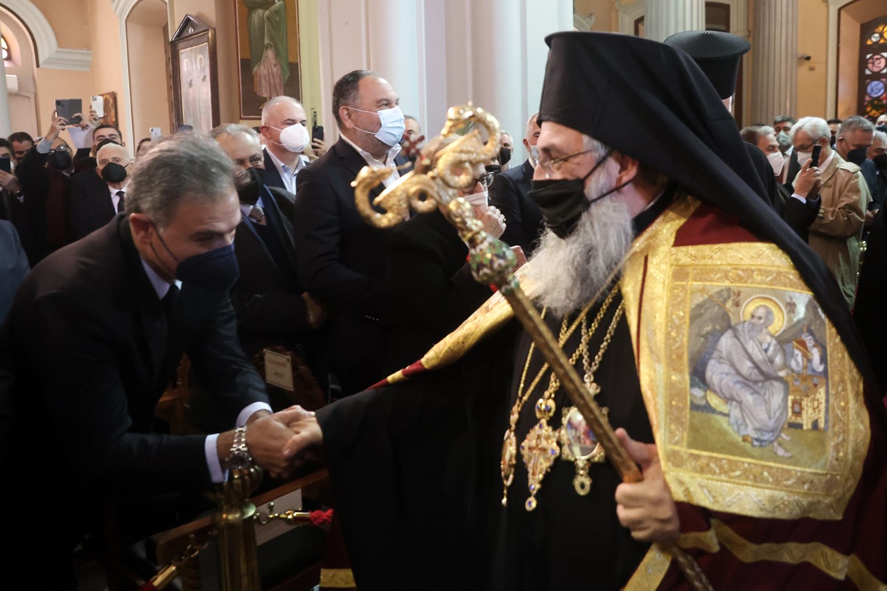 Λίγο πριν τις 12 το μεσημέρι αφήχθη στον Μητροπολιτικό Ναό ο Πρωθυπουργός Κυριάκος Μητσοτάκης ενώ λίγη ώρα νωρίτερα κατέφθασαν και οι υπουργοί, ο Δήμαρχος Βασίλης Λαμπρινός, ο Περιφερειάρχης Κρήτης Σταύρος Αρναουτάκης, οι πρόεδροι του δημοτικού και περιφερειακού συμβολίου, υπουργοί και τοπικοί βουλευτές.