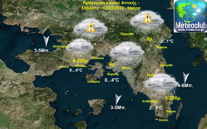 Νεφελώδης καιρός προβλέπεται το Σάββατο στην Αττική με χιονοπτώσεις τις πρώτες πρωινές ώρες στα βόρεια – βορειοδυτικά του νομού. Τοπικές νεφώσεις με λίγα διαστήματα ηλιοφάνειας αναμένονται αρχικά στο Λεκανοπέδιο, αλλά και τοπικές χιονοπτώσεις.
