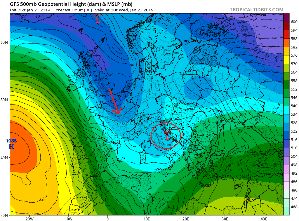 Ένας από τους κυριότερους λόγους αυτής της παρατεταμένης κακοκαιρίας είναι η μετατόπιση του Αζορικού αντικυκλώνα ο οποίος θα μεταφέρει ψυχρές αέριες μάζες σε αρκετά σημεία της βορειοδυτικής – βόρειας και κεντρικής Ευρώπης αλλά και θα έχει και τις προδιαγραφές να δημιουργεί συνεχόμενα βαρομετρικά χαμηλά στην κεντρική Μεσόγειο, ικανά να παρατείνουν το διάστημα των βροχοπτώσεων έως και το τέλος του Ιανουαρίου με αρχές Φεβρουαρίου.