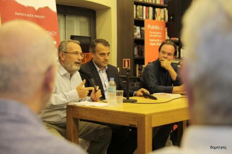 Στην εκδήλωση της οδού Ερμού μίλησαν για το βιβλίο ο δημοσιογράφος και πρώην υπουργός Παντελής Καψής και ο Μιχάλης Μπλέτσας από το Τεχνολογικό Ίδρυμα της Μασαχουσέτης.