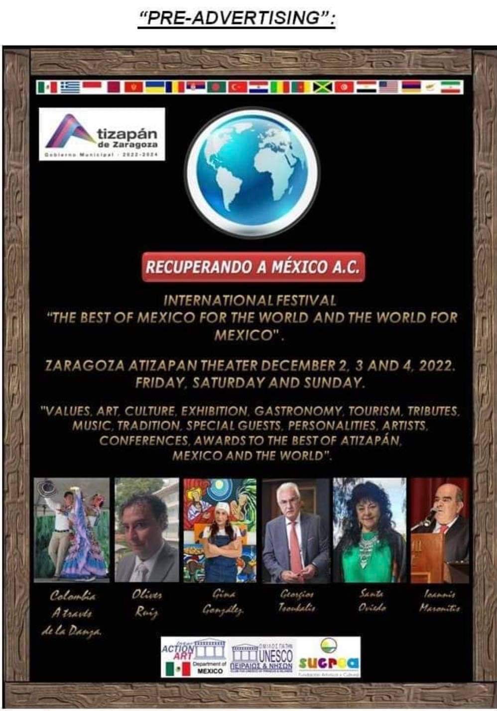 Η διεθνής αυτή διάκριση και βράβευση του οικουμενικού διώκτη της αρχαιοκαπηλίας θα γίνει σε ειδική εκδήλωση στο πλαίσιο του διεθνούς φεστιβάλ «Τα καλύτερα από το Μεξικό για τον κόσμο και ο κόσμος για το Μεξικό» το οποίο πραγματοποιείται από 2-4 Δεκεμβρίου 2022 στο θέατρο Zaragoza Atizapan στο Μεξικό.