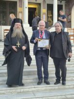 Η βράβευση του γνωστού ιδιωτικού ερευνητή και διώκτη των ιερόσυλων, έγινε αφενός με αφορμή την στήριξή του προς τους μαθητές του Ωδείου, και αφετέρου για την πρόσφατη σημαντική επιτυχία του που οδήγησε στη σύλληψη δύο ιερόσυλων που κατείχαν παράνομα εικόνα μεγάλης αξίας του 16ου αιώνα, με θέμα το Δωδεκάορτο, που αφορά στις δώδεκα πιο σημαντικές γιορτές της Εκκλησίας μας που έχουν βέβαια σχέση με τη ζωή του Χριστού.