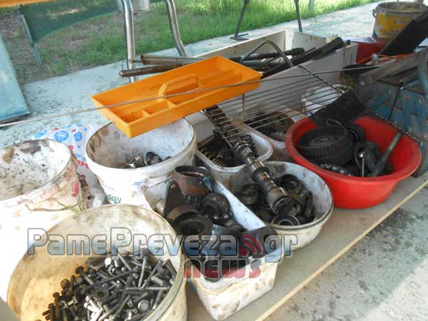 Βίδες, ελατήρια, αλυσίδες, κλειδιά, εξατμίσεις, πιστόνια, βαλβίδες, γρανάζια, παξιμάδια, πλάκες, είναι μερικά από τα υλικά που συνθέτουν τις μοναδικές δημιουργίες του.