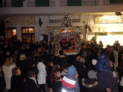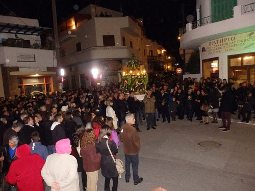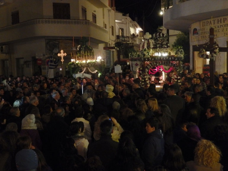 Τόσο στα χωριά όσο και στη Χώρα οι καμπάνες χτυπούσαν πένθιμα, ενώ ο κόσμος έψαλε «αι γενεαί αι πάσαι ύμνον τη Ταφή Σου, προσφέρουσι Χριστέ μου».