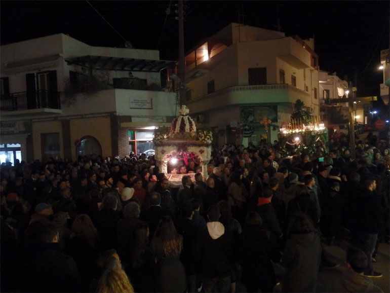 Με κατάνυξη παρακολούθησαν κάτοικοι και επισκέπτες στη Νάξο την Ακολουθία του Επιταφίου και την περιφορά το βράδυ της Μεγάλης Παρασκευής.