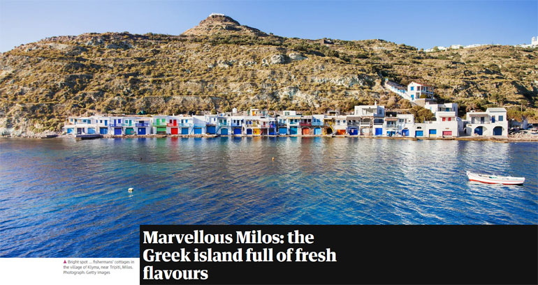 Τον γαστρονομικό πλούτο της Μήλου αναδεικνύει ο βρετανικός «Guardian» με ένα εκτενές άρθρο, εξυμνώντας το φαγητό αλλά και το απαράμιλλο σκηνικό του φυσικού τοπίου της.