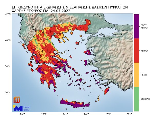Αξίζει να σημειώσουμε ότι αν και τα μελτέμια θα υποχωρήσουν αρκετά, ο κίνδυνος για πυρκαγιές θα είναι αρκετά υψηλός λόγω της πολύ θερμής και ξηρής ατμόσφαιρας, κάτι που το ζήσαμε και πέρυσι με τις φωτιές στην Βαρυμπόπη. Σαν πιο δύσκολες ημέρες θα μπορούσαν να χαρακτηριστούν η Κυριακή και η Δευτέρα, όπου στη συνέχεια φαίνεται μια μικρή κάμψη του υδραργύρου στα ανατολικά της χώρας, με τη ζέστη να επιμένει στα υπόλοιπα.
