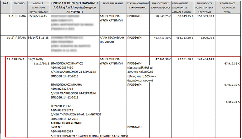Το zougla.gr επικοινώνησε, ως όφειλε, με τον κ. Μιχάλη Σπανόπουλο την Πέμπτη το πρωί. Ο επιχειρηματίας βρισκόταν, όπως δήλωσε, στο εξωτερικό. Σε ερώτηση σχετικά με το έγγραφο στο οποίο εμφανίζεται να έχει εμπλακεί σε υπόθεση λαθρεμπορίας καυσίμων και ως εκ τούτου να του έχει επιβληθεί πρόστιμο της τάξεως των 141.000 ευρώ, ο κ. Σπανόπουλος απάντησε: «Αυτά είναι βλακείες, αυτά είναι βλακείες, αυτό έχω να σας πω».