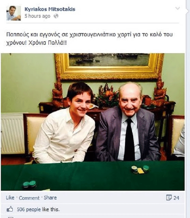 Μία φωτογραφία από χαρούμενες οικογενειακές στιγμές ανέβασε στο προφίλ του στο facebook, ο υπουργός Διοικητικής Μεταρρύθμισης, κ. Κυριάκος Μητσοτάκης.