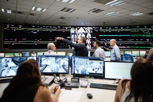 Ο πρωθυπουργός συνομίλησε με εργαζόμενους στο κέντρο ελέγχου και ευχαρίστησε το προσωπικό όλων των μέσων μεταφοράς για τη στήριξή του στην επέκταση του ωραρίου λειτουργίας τα Σάββατα, με στόχο την ασφαλή μετακίνηση επιβατών τις νυχτερινές ώρες.