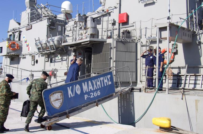 Στη συνέχεια, απηύθυνε χαιρετισμό στα πληρώματα της Κανονιοφόρου (ΚΦ) ΜΑΧΗΤΗΣ και της Πυραυλακάτου (ΤΠΚ) ΤΡΟΥΠΑΚΗΣ.