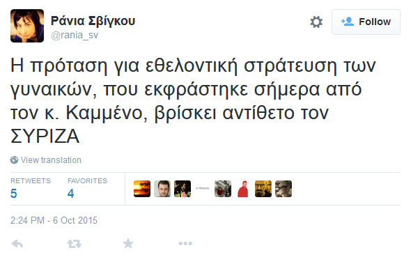 Υπέρ της εθελοντικής στράτευσης των γυναικών τάχθηκε ο υπουργός Άμυνας Πάνος Καμμένος.