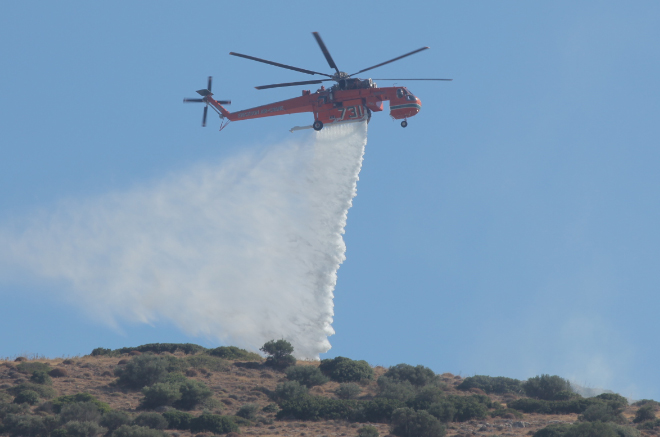 Από τις πρώτες πρωινές ώρες της Κυριακής, στο έργο της πυρόσβεσης «ρίχτηκαν» ξανά τα εναέρια μέσα: Συνολικά δύο αεροσκάφη και τρία ελικόπτερα πραγματοποιούν ρίψεις νερού.