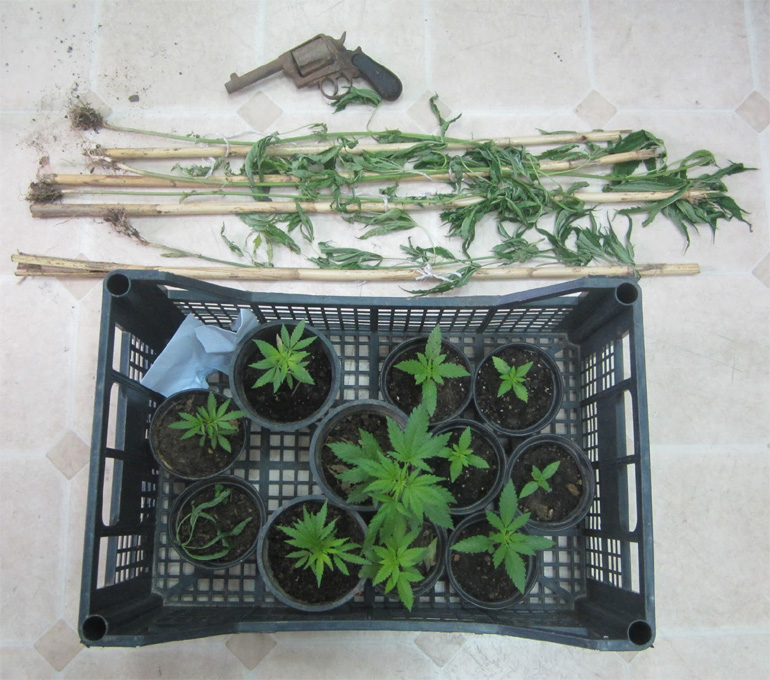 Σε έρευνες που έγιναν στο σπίτι και στο κτήμα του συλληφθέντος, με τη συνδρομή αστυνομικού σκύλου, εντοπίστηκαν και κατασχέθηκαν:
