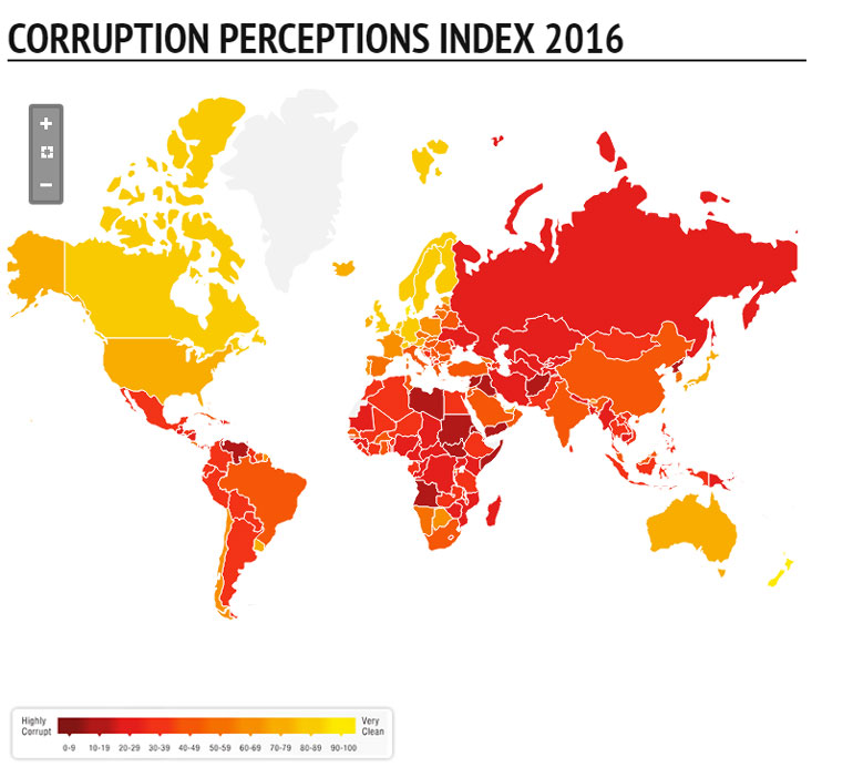 Ειδικότερα, η χώρα μας από την 58η θέση στην οποία βρισκόταν το 2015 υποχώρησε στην 69η (σε σύνολο 176 χωρών), επιστρέφοντας στα επίπεδα του 2014 και ακολουθώντας την παγκόσμια τάση που καταγράφει αύξηση της διαφθοράς.