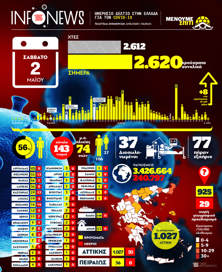 Δείτε στο infographic που ακολουθεί τον ελληνικό χάρτη του κορωνοϊού...