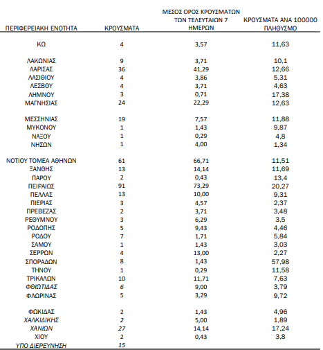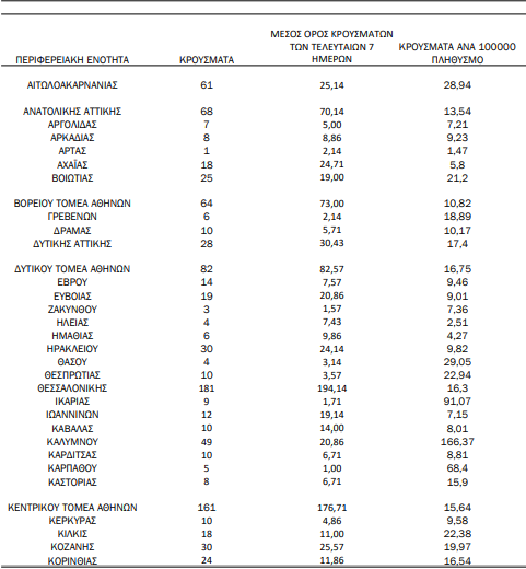 Σήμερα, Τρίτη 4 Μαΐου, από τα 1.387 κρούσματα που καταμετρήθηκαν στη χώρα, τα 556 βρέθηκαν στην Αττική, τα 181 στη Θεσσαλονίκη και σε κάθε περιφέρεια εντοπίστηκαν ως εξής: