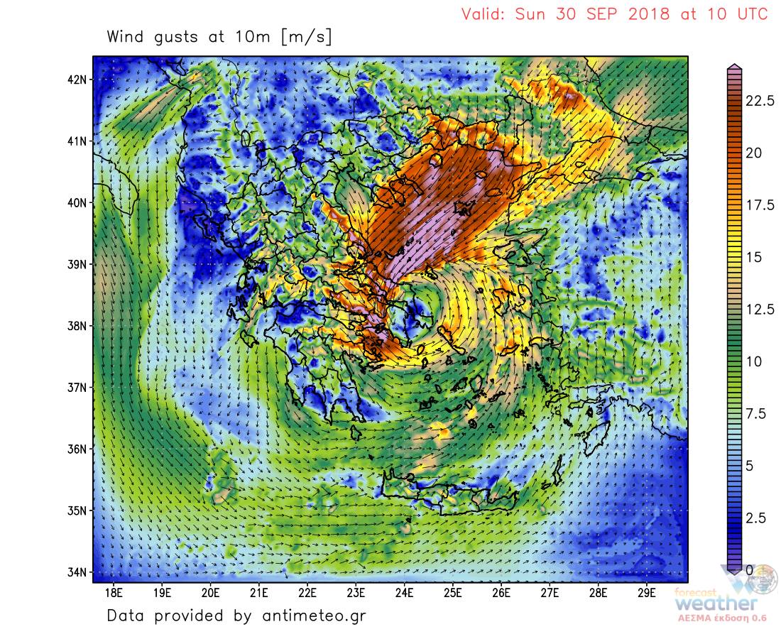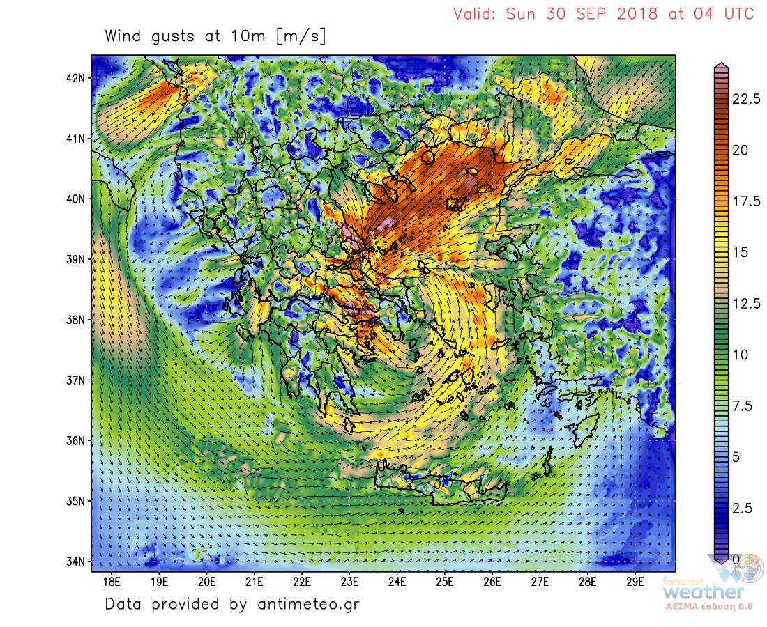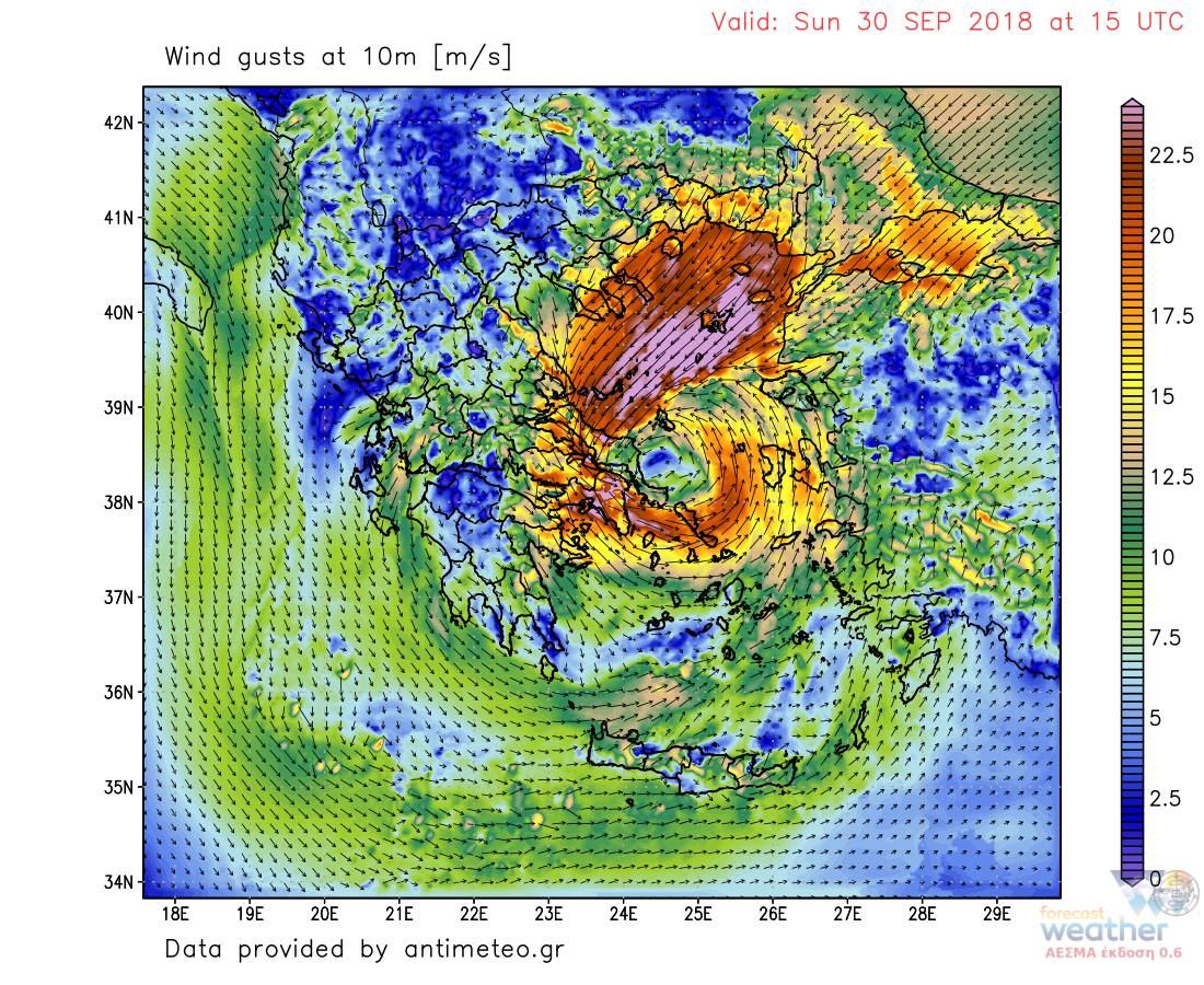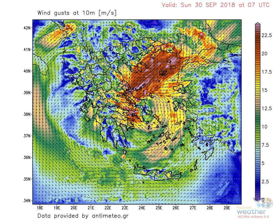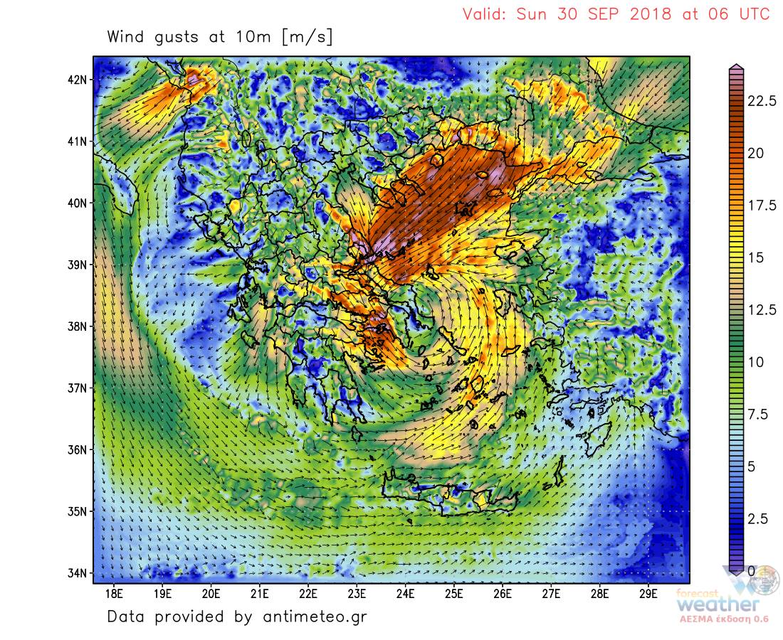 Τα φαινόμενα αρχικά θα είναι ισχυρά στη Βόρεια και Ανατολική Πελοπόννησο, στη Κεντρική και Ανατολική Στερεά, στη Θεσσαλία και στο Κεντρικό και Βόρειο Αιγαίο, από το απόγευμα όμως τα ισχυρά φαινόμενα θα πλήξουν κυρίως την Ανατολική Στερεά, τη Θεσσαλία, το Βόρειο Αιγαίο και την Κεντρική Μακεδονία.