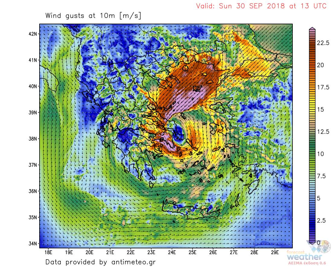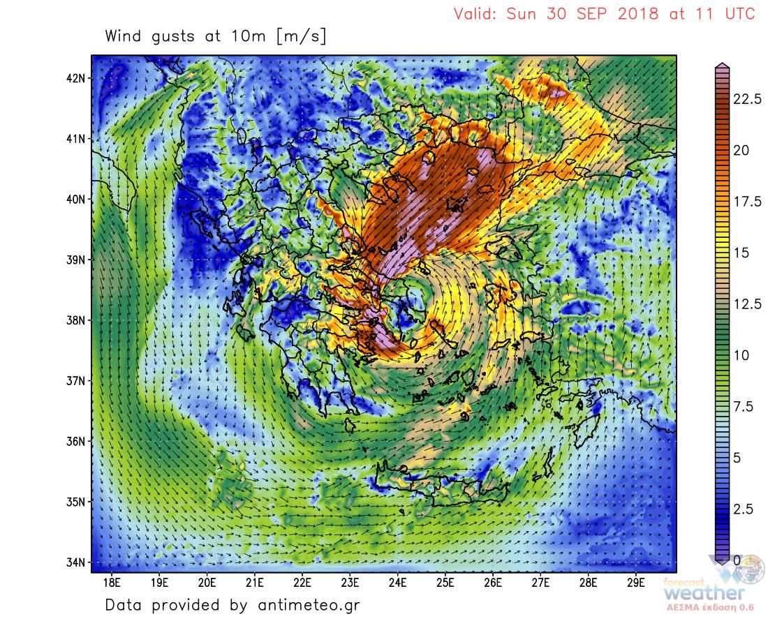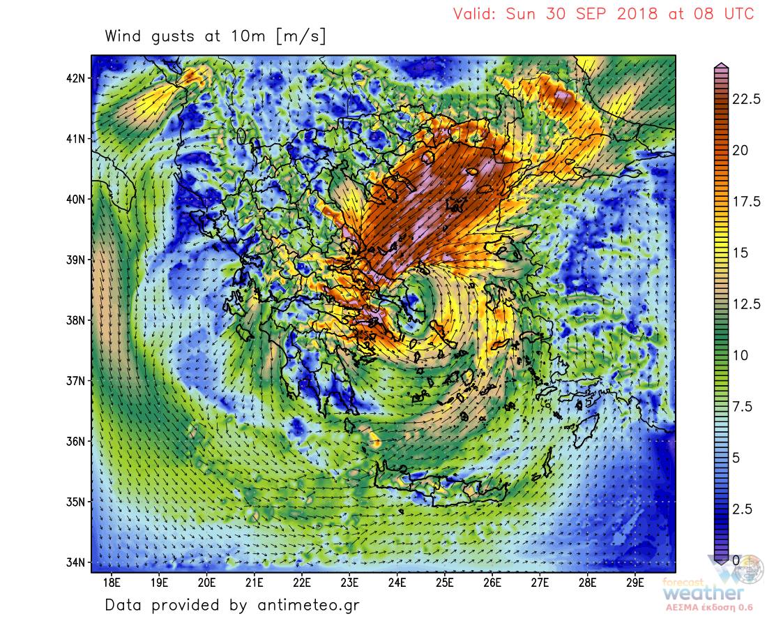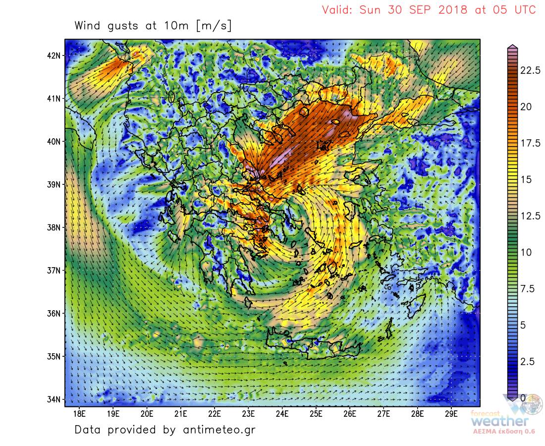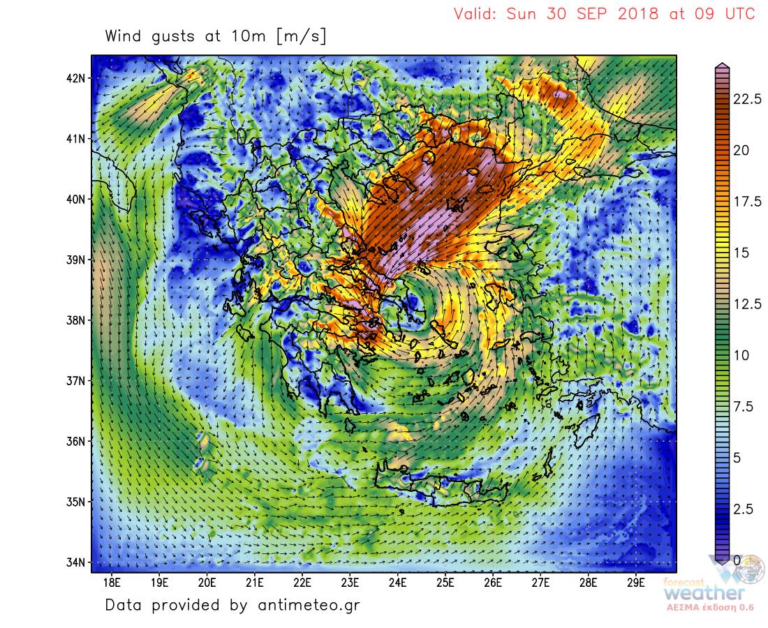 Τα φαινόμενα αρχικά θα είναι ισχυρά στη Βόρεια και Ανατολική Πελοπόννησο, στη Κεντρική και Ανατολική Στερεά, στη Θεσσαλία και στο Κεντρικό και Βόρειο Αιγαίο, από το απόγευμα όμως τα ισχυρά φαινόμενα θα πλήξουν κυρίως την Ανατολική Στερεά, τη Θεσσαλία, το Βόρειο Αιγαίο και την Κεντρική Μακεδονία.