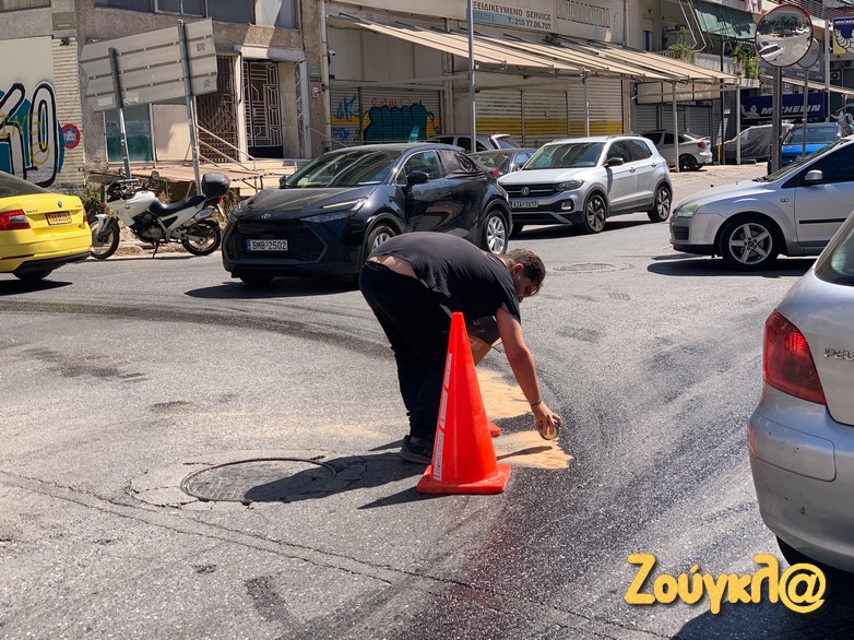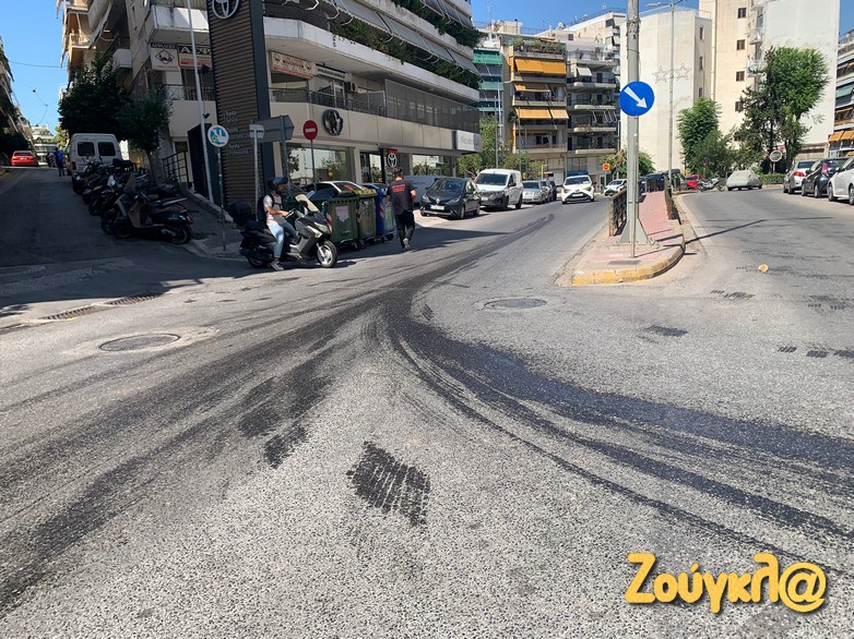 Το επικίνδυνο αυτό «ίχνος» προκάλεσε πτώση δύο μοτοσικλετιστών, οι οποίοι έχασαν την ισορροπία τους στην ολισθηρή επιφάνεια. Οι δύο νεαροί άντρες τραυματίστηκαν ελαφριά και δεν χρειάστηκε να διακομισθούν στο νοσοκομείο.