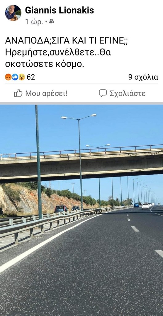 Σύμφωνα με τα όσα γνωστοποίησε ο κ. Λιονάκης, κατά τις μεσημεριανές ώρες ένας οδηγός μπήκε στο αντίθετο ρεύμα και οδηγούσε μάλιστα για αρκετή ώρα ανάποδα στον προαναφερθέντα οδικό άξονα. Το ευτύχημα ήταν, ότι δεν υπήρξε κάποιο τροχαίο ατύχημα.
