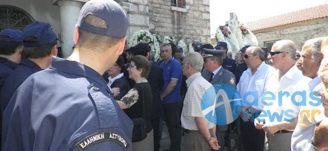 Πλήθος κόσμου συγκεντρώθηκε στον Ιερό Ναό του Αγίου Ιωάννη Προδρόμου στο χωριό Δαφνιάς της Μακρυνείας για να πει το τελευταίο αντίο στον άτυχο άνδρα. Πολλοί ήταν οι συνάδελφοί του αστυνομικού που παρευρέθηκαν στο χώρο του Ιερού Ναού καθώς και συγγενείς και φίλοι ενώ τραγική φιγούρα ήταν η γυναίκα του αστυνομικού που έπεσε άδικα από τα πυρά των δραπετών.
