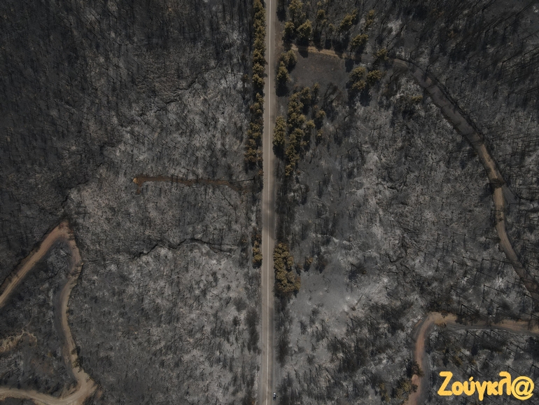 Καμένα σπίτια, αντικείμενα μέσα σε αυτά και αναμνήσεις μιας ζωής που έγιναν στάχτη, αντικρίζει κάποιος στα έρημα χωριά της Βόρειας Εύβοιας μετά την εκκένωσή τους. Μία μαύρη γη άφησε στο πέρασμά της η καταστροφική πυρκαγιά που εκδηλώθηκε στην περιοχή πριν από εννέα ημέρες και ακόμα σιγοκαίει…Οι αναζωπυρώσεις είναι πολλές αλλά μικρής έντασης.