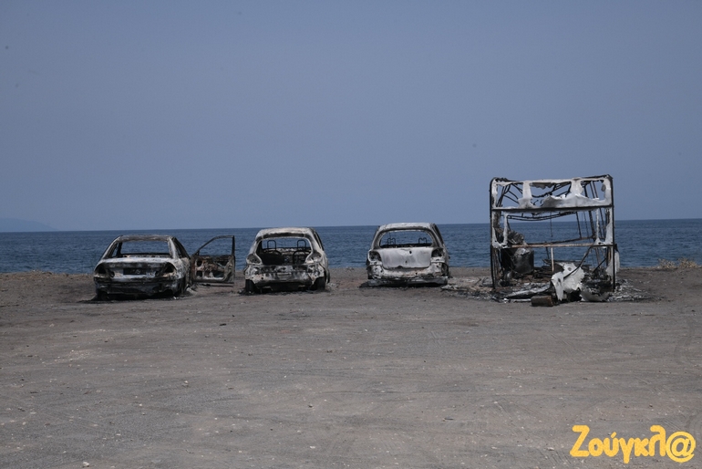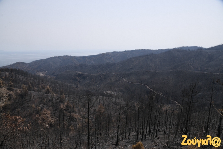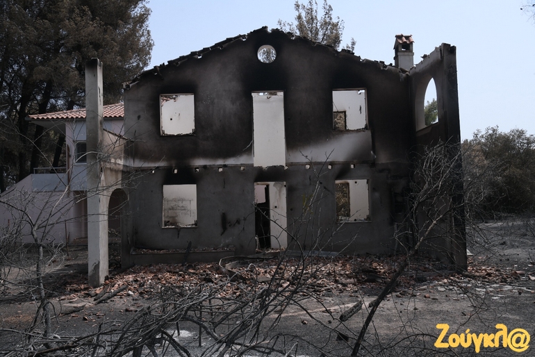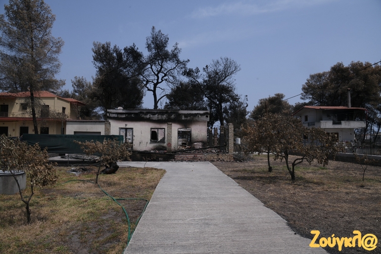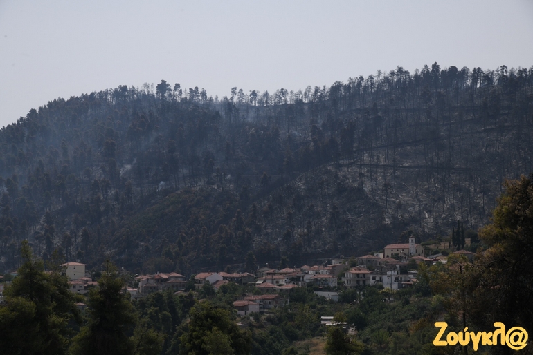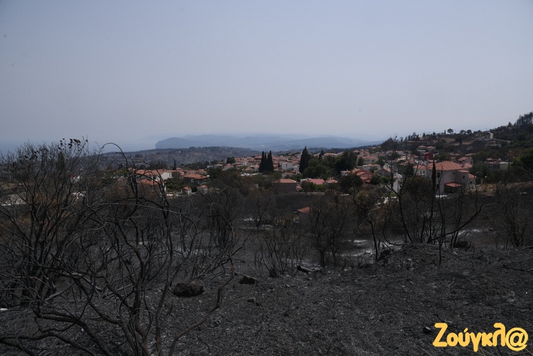 Καμένα σπίτια, αντικείμενα μέσα σε αυτά και αναμνήσεις μιας ζωής που έγιναν στάχτη, αντικρίζει κάποιος στα έρημα χωριά της Βόρειας Εύβοιας μετά την εκκένωσή τους. Μία μαύρη γη άφησε στο πέρασμά της η καταστροφική πυρκαγιά που εκδηλώθηκε στην περιοχή πριν από εννέα ημέρες και ακόμα σιγοκαίει…Οι αναζωπυρώσεις είναι πολλές αλλά μικρής έντασης.