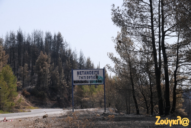 Ωστόσο τα άλλοτε καταπράσινα χωριά του νησιού που δέχονταν τους επισκέπτες τους όλες τις εποχές για να θαυμάσουν αυτό το τοπίο με την απαράμιλλη ομορφιά, δεν υπάρχει πια… Σε ορισμένους οικισμούς τα σπίτια που σώθηκαν είναι τα μόνα που συμβολίζουν την ελπίδα ανάμεσα στα καμένα δέντρα και τα ζώα της φύσης. Σήμερα ελάχιστοι κάτοικοι βρίσκονται σε αυτά για να καθαρίσουν τις στάχτες που άφησε πίσω της η φωτιά. Ακόμα και αυτό όμως γίνεται με δυσκολία, αφού δεν έχουν ούτε τα μέσα ούτε τα απαραίτητα «χέρια» για να συνδράμουν σε αυτό.