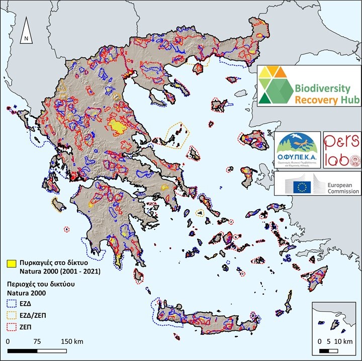 2. Πυρκαγιές που σημειώθηκαν σε περιοχές του Δικτύου Natura 2000 κατά τα έτη 2001-2021.