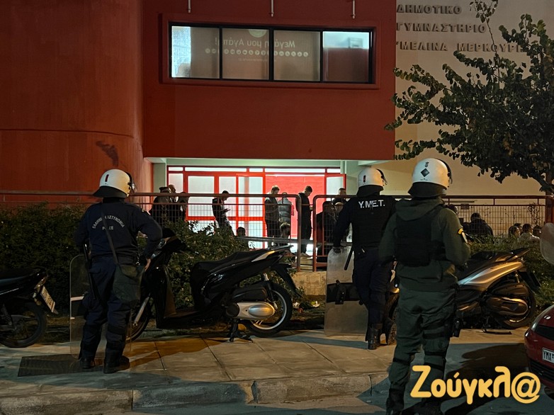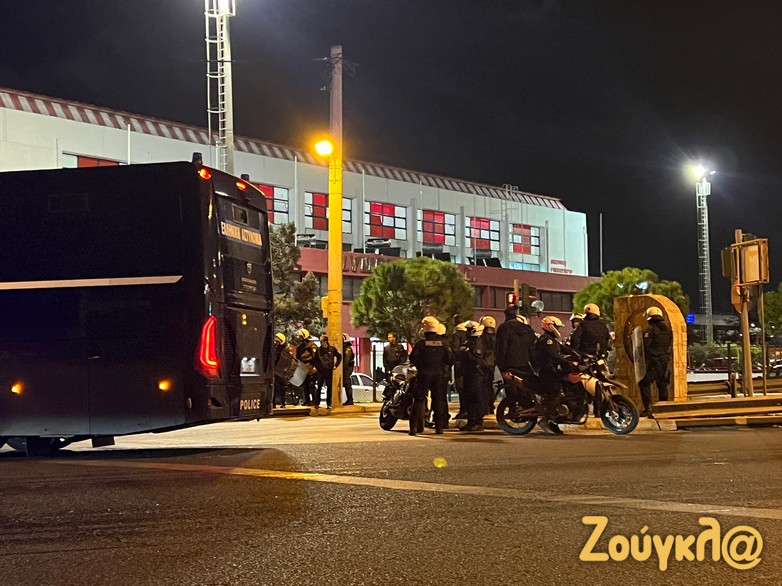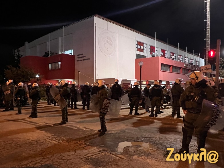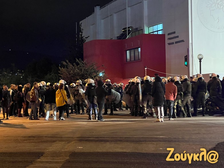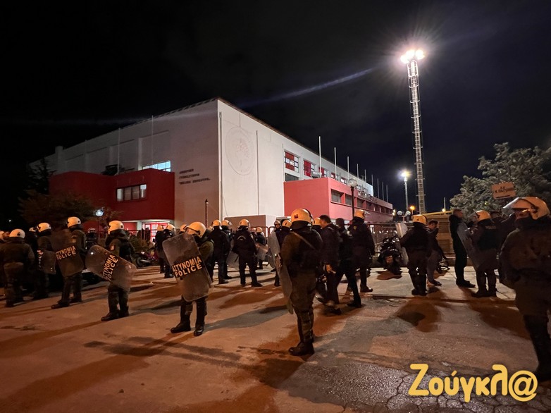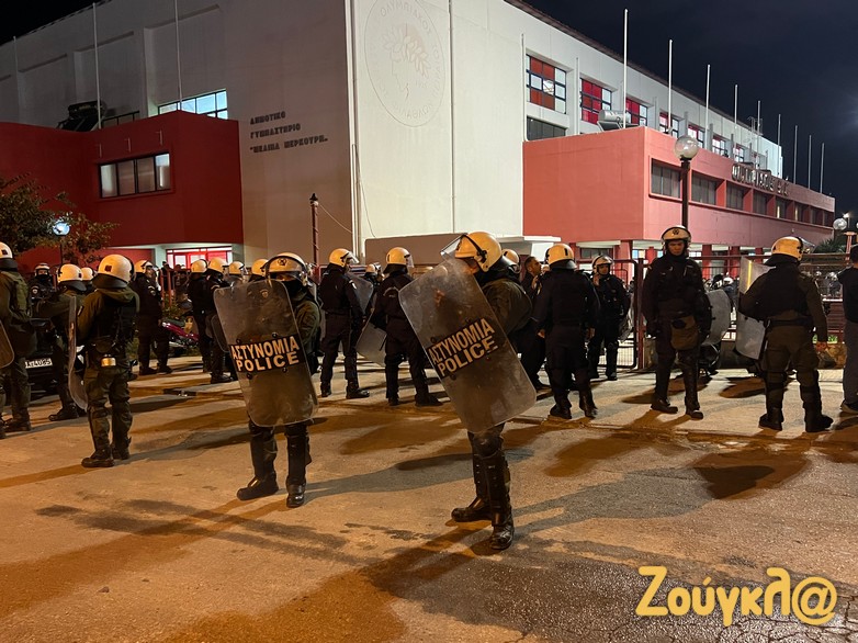 Σύμφωνα με την Αστυνομία, γύρω στις 21:30 περίπου 150 άτομα βγήκαν έξω από το κλειστό και πέταξαν βόμβες μολότοφ προς τις αστυνομικές δυνάμεις, οι οποίες απάντησαν με χρήση χημικών.